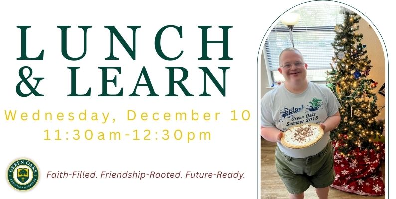 Join us over lunch to learn about the programs we offer for individuals with intellectual disabilities and why families have chosen Green Oaks for over 25 years. We will have a short tour of our campus followed by lunch and an overview of Green Oaks School, GOAL (Green Oaks Adult Learning), Green Oaks Life Prep, & our summer options. This is a wonderful opportunity to connect, hear more about what we do, and ask questions. RSVPs are required to ensure we will have enough lunch for everyone. All are welcome to attend! RSVP Here: https://lp.constantcontactpages.com/ev/reg/akscjm6